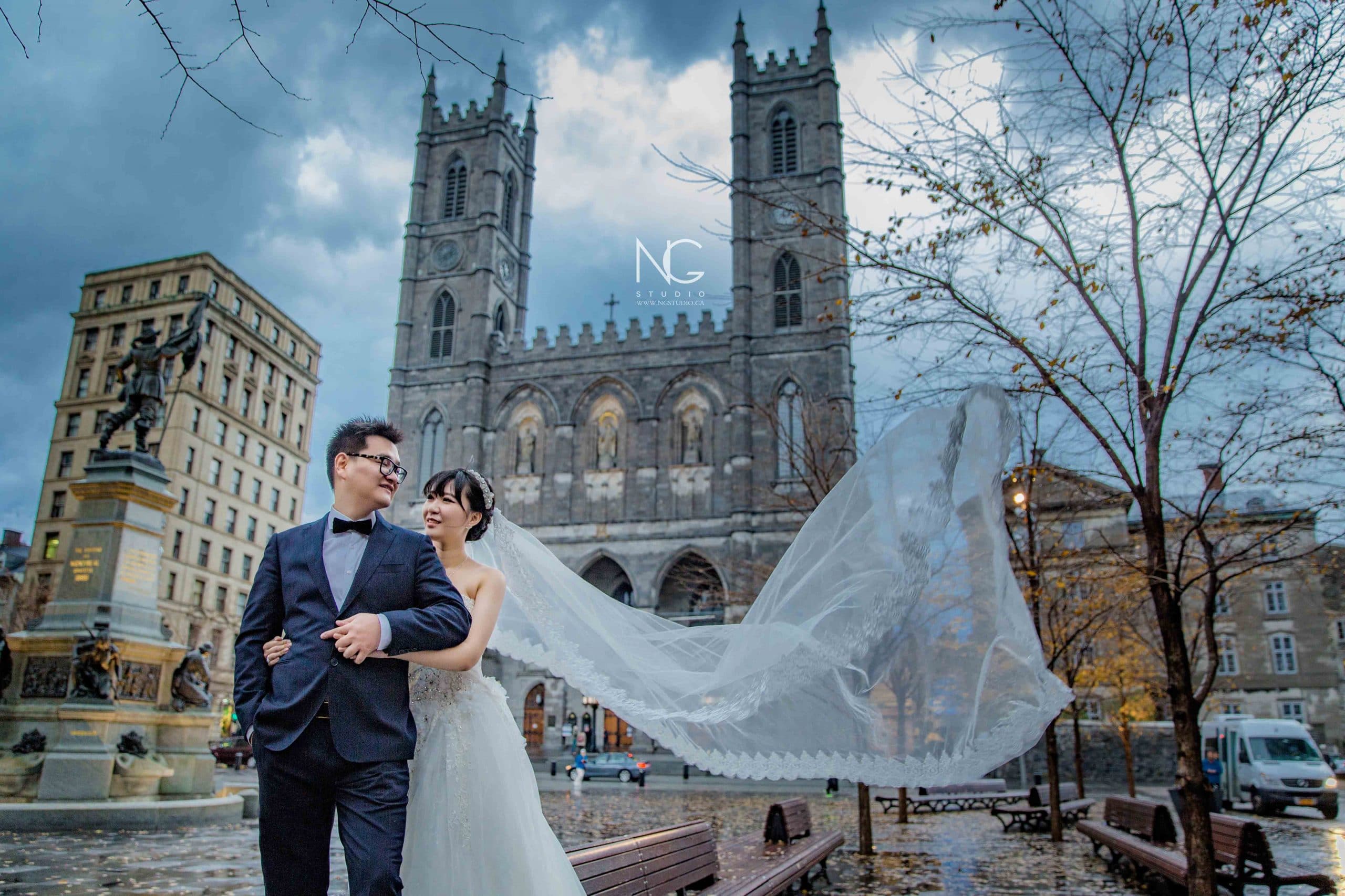 Mandy and Liang are a beautiful couple who enlisted NG Studio’s assistance in taking pre-wedding photographs at a few memorable historic locations in Montreal, Quebec. The locations of their choosing are all monumental and extraordinary. The first location was at the famous Notre-Dame Basilica, a Catholic Church that was built