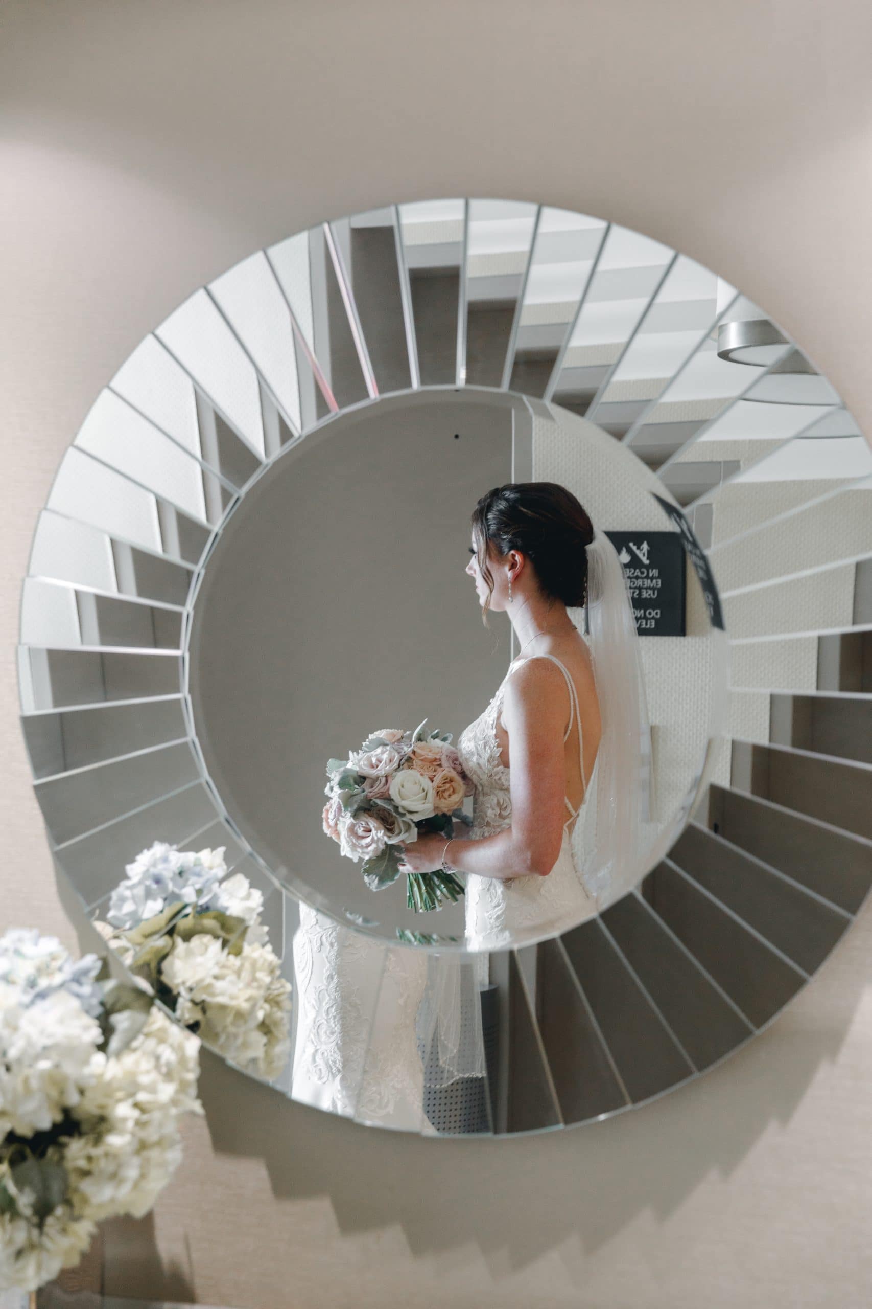 Sylvia and Andy, are a traditional Chinese couple, who were married at the famous location site of Casaloma, in Toronto. The bride is pictured with her corset flowing gown, decorated with lace, surrounded by her loved ones. The gown that is worn by the bride, is a princess style dress,